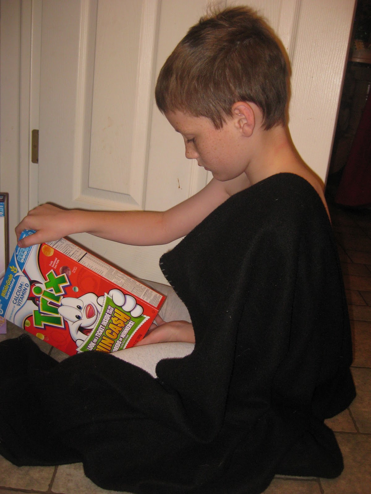 I don't know where Brandon learned about sugar content- Scouts maybe?  One morning when I asked him which cereal he wanted he decided to base his decision on which one has the least amount of sugar. I thought this was hilarious!  Which sugary cereal has the least amount of sugar...........